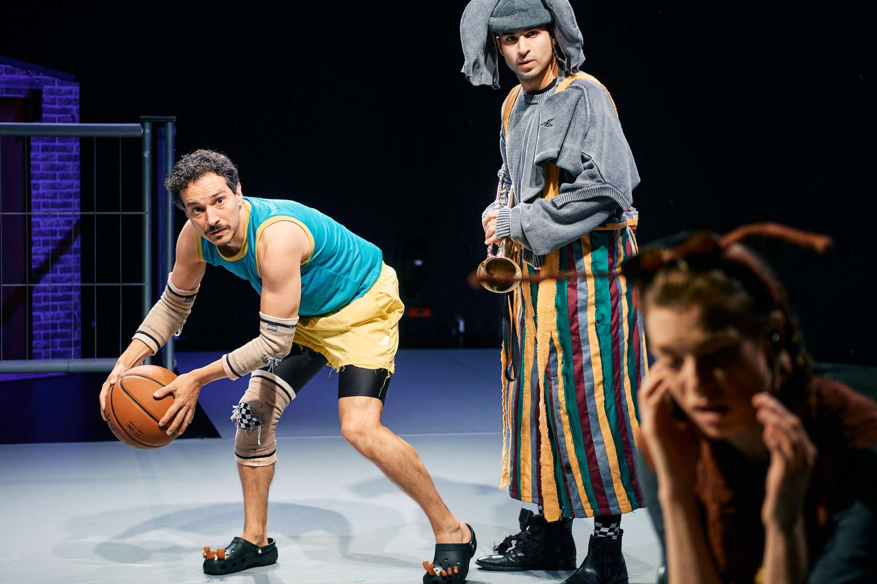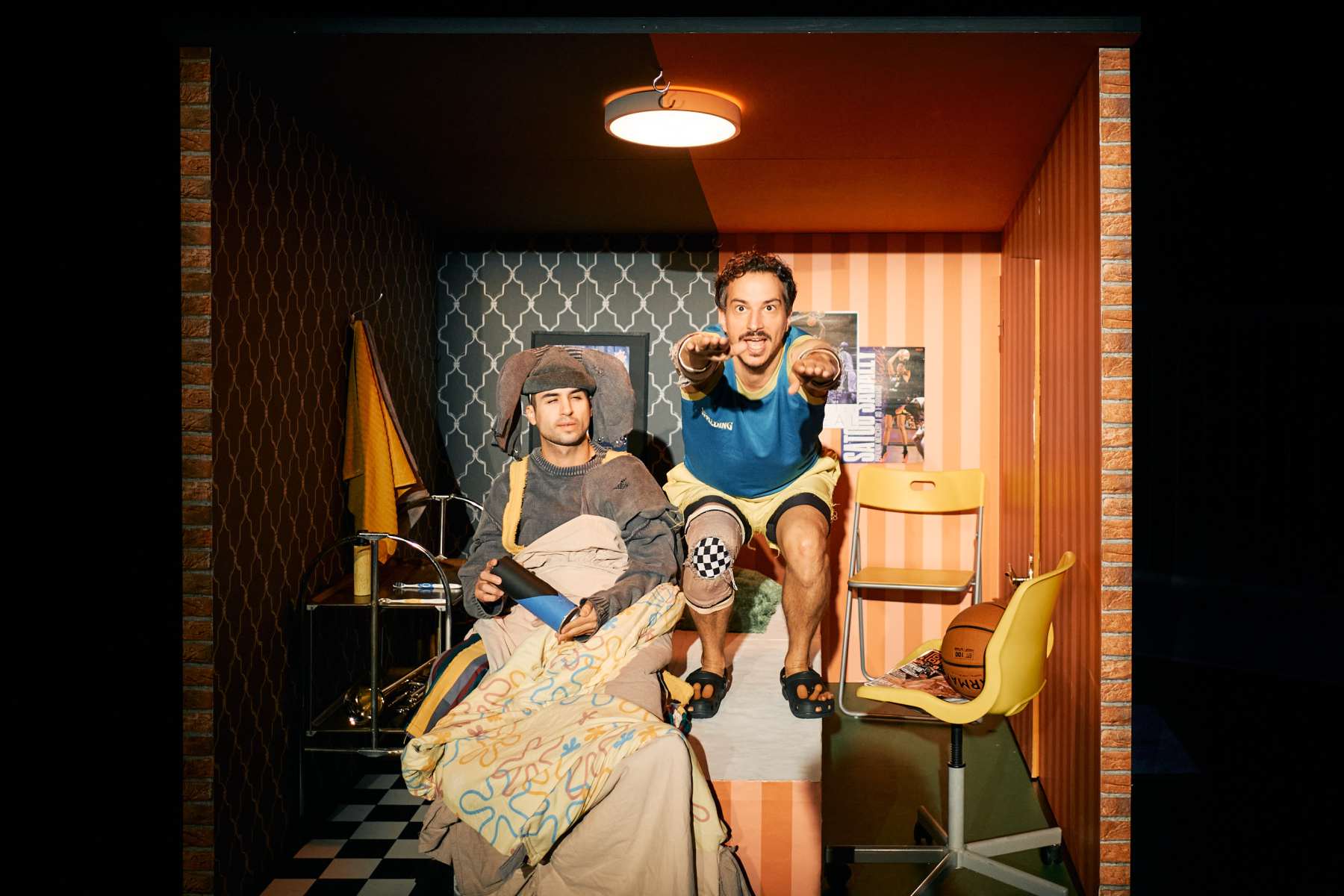 Saskia, eine Schnecke ohne Schneckenhaus, nimmt ihren Job sehr ernst: Sie ist Security und dafür verantwortlich, dass niemand den großen, leeren Raum betritt. Denn der Raum gehört einem Besitzer, und der Besitzer darf bestimmen. Nebenan, in einem ganz kleinen Zimmer, leben Eddie, der Elefant, und Georg, der größte Mensch der Welt. Wenn sie doch nur mehr Platz hätten! Aber die Grenze zwi- schen den beiden Bereichen scheint unverrückbar, und Saskia hat ihre eigenen Sorgen … Wir wollen endlich wissen: Gibt es Gerechtigkeit? Warum haben die einen mehr als die anderen – obwohl sie es gar nicht brauchen? Warum dürfen nicht alle alles (gleich)? Riesen Probleme lädt das Publikum ein, eine Haltung zu entwickeln: Was ist fair? Welche Regeln sollten gelten? Welche Grenzen gehören verschoben? Gar nicht so einfach – und wahnsinnig komisch. Ein interaktives Stück über